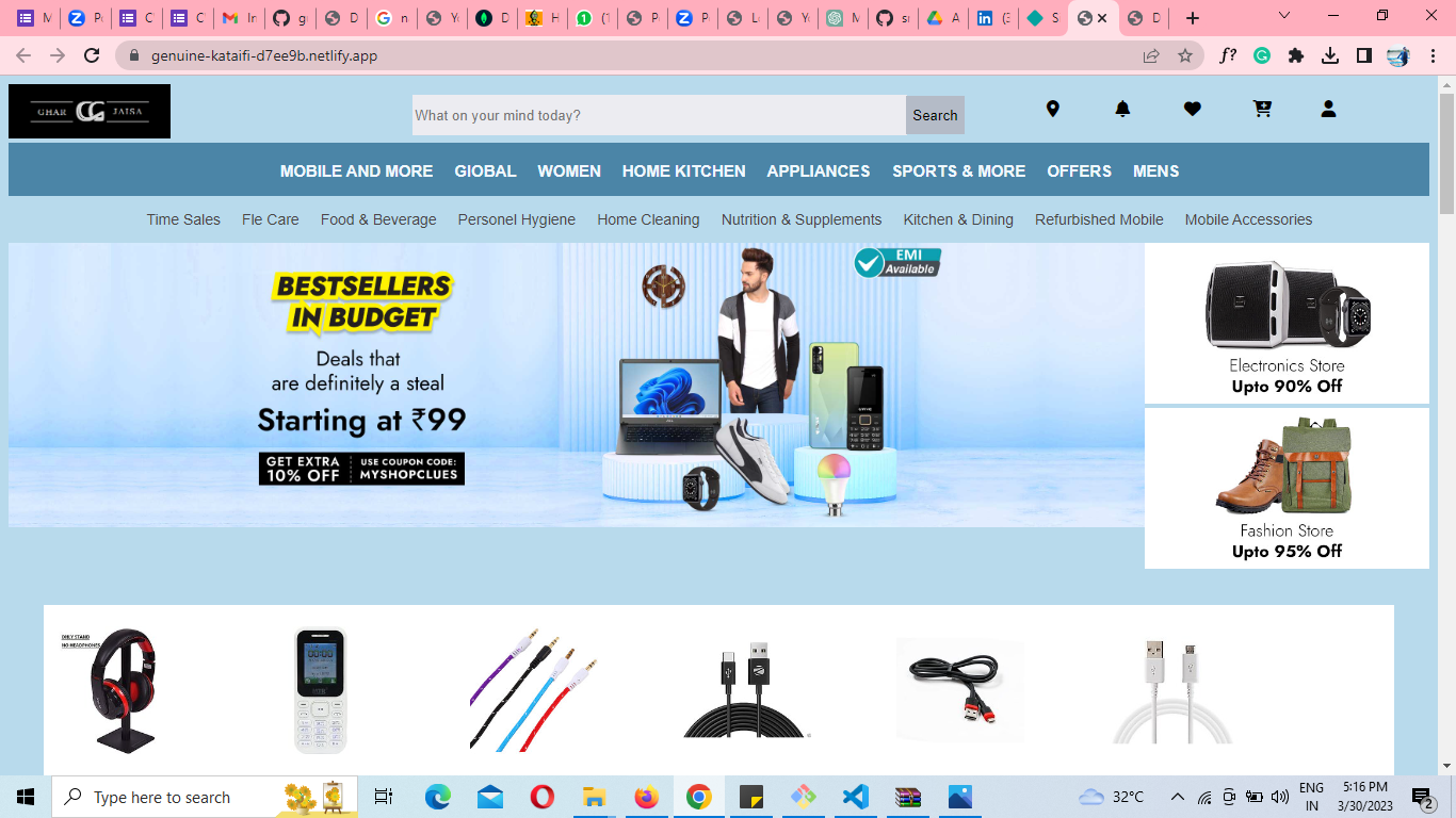 E-commerce website where users can buy products such as clothing, shoes, handbags, watches etc